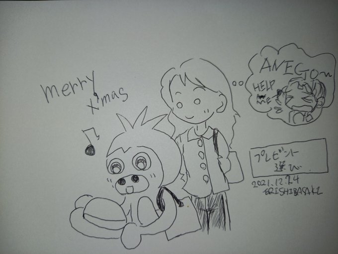 「明○家サンタからのでんわまち」 クリスマス。おさるさんは、電話の前から離れません。 れぼこが担当ちゃんねーに、「おさるさん。じーっと座ってる。」と話すと、「今年もなの?」と、驚く。 #れぼこ #おさるさん #担当ちゃんねー #クリスマス #絵描きさんと繋がりたい #絵師さんと繋がりたい