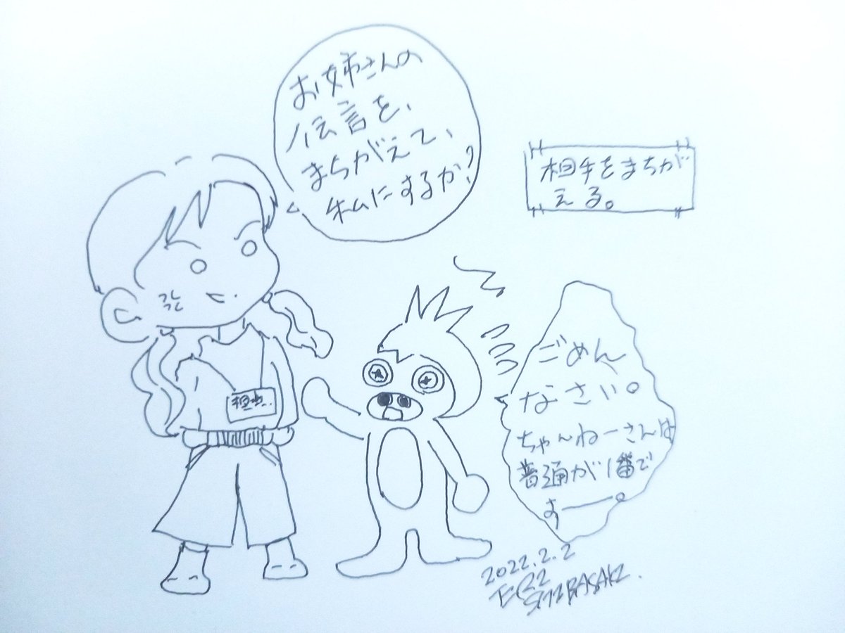 「相手をまちがえる」 おさるさんが、お姉さんにする伝言を担当ちゃんねーにしてしまった。 おさるさんの間違った伝言に、応える担当ちゃんねー。 おさるさん。次から気を付けようね。 #ツインテールの日 #おさるさん #担当ちゃんねー #激務労働 #絵描きさんと繋がりたい #絵師さんと繋がりたい