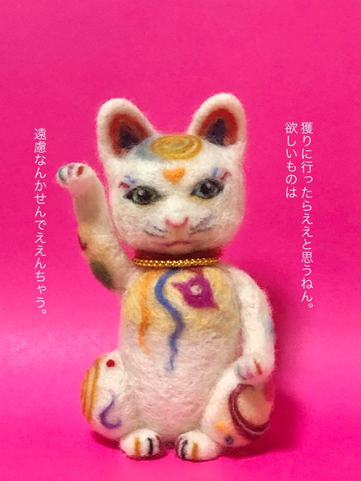 猫ちゃんのキーホルダーを作るつもりが顔が大きくなってしまったので、急遽、置き型タイプの招き猫を作ってみました🐱✨久々に置き型タイプを作ったら体のポーズを作るのにかなり時間かかってしまった〜💦初めて動画も撮ってみました🎥 #羊毛フェルト #招き猫 #ハンドメイド好きさんと繋がりたい twitter.com/i/web/status/1…