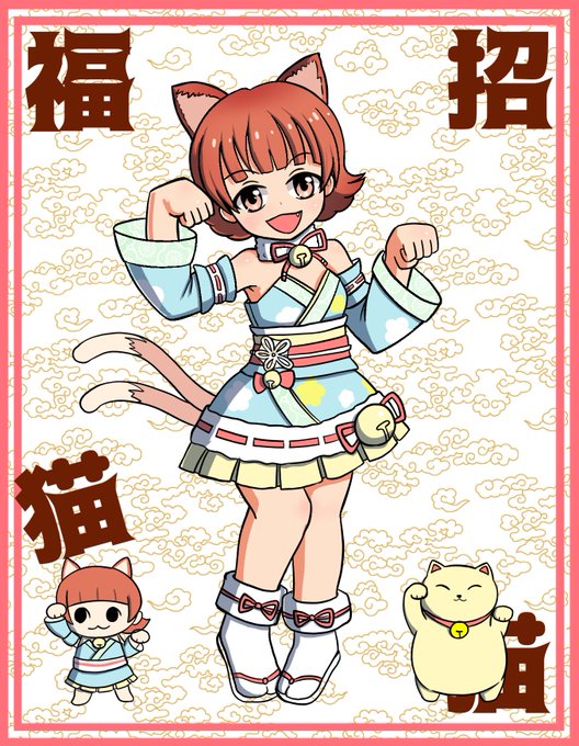 おはようございます✨ 描けました😊‼️ 思いつきシリーズ・置き物編 「招きネコ」より 「招きデコ」 #イラスト #illustration #みんなで楽しむTwitter展覧会 #招き猫の日 #イラスト好きな人と繋がりたい #絵描きさんと繋がりたい