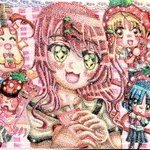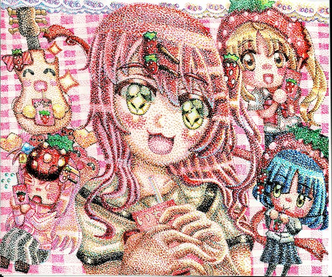 ライブ後、いちごジュースでお疲れ会するぼっちちゃん達🍓 ぼっちざろっく最終回リアタイで見ました!素敵な作品をありがとう!(*´ω`*) #ぼっち・ざ・ろっく #BocchiTheRock #点描画 #イラスト #拡大して見てね