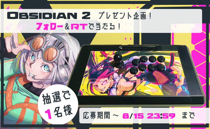 #拡散希望 Obsidian 2✨🕹️を 頂く機会があり、そこで私が描いたジュリを天板にしたObsidian 2を1名様にプレゼント🎁します! ■参加方法 ①@Lag_WO76_Aをフォロー ②この投稿をいいね&RT 応募期間 ~8/ 15 23:59まで 沢山の応募お待ちしています!🙇♀️… twitter.com/i/web/status/1…