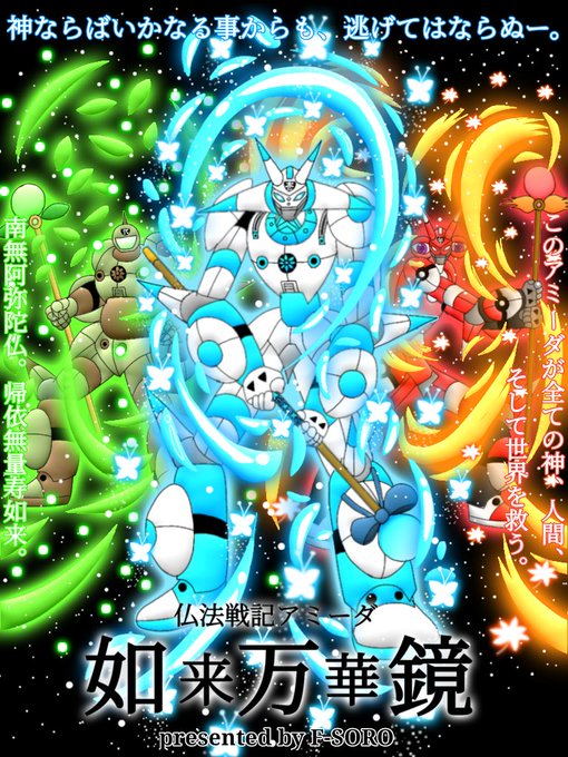 新作小説「仏法戦記アミーダ 如来万華鏡」のアミーダ1号機、2号機、3号機のポスターを作ってみた。 #イラスト #イラスト好きな人と繋がりたい #絵描きさんとつながりたい #冬の創作クラスターフォロー祭り #拡散希望RTお願い致します
