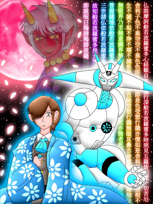 仏ナオト×アミーダ1号機×閻魔天(般若心経) 「仏法戦記アミーダ」より #イラスト #イラスト好きな人と繋がりたい #絵描きさんとつながりたい #私の絵柄が好みって人にフォローされたい #冬の創作クラスタフォロー祭り #拡散希望RTお願い致します