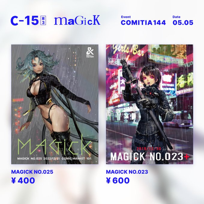 追記 #コミティア144お品書き 5月5日の #コミティア144 にサークル参加します! スペースは C-15 MAGICK 新刊はないですが新作Tシャツと展覧会で販売したアイテムの「光るヒートナイフ」を持っていきます! #拡散希望RTお願い致します