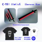 遅くなりました! 5月5日の #コミティア144 にサークル参加します! スペースは C-15 MAGICK 新刊はないですが新作Tシャツと展覧会で販売したアイテムの「光るヒートナイフ」を持っていきます! アイテムの詳しい情報は #コミティア144お品書き としてTLに追記しますので #拡散希望RTお願い致します