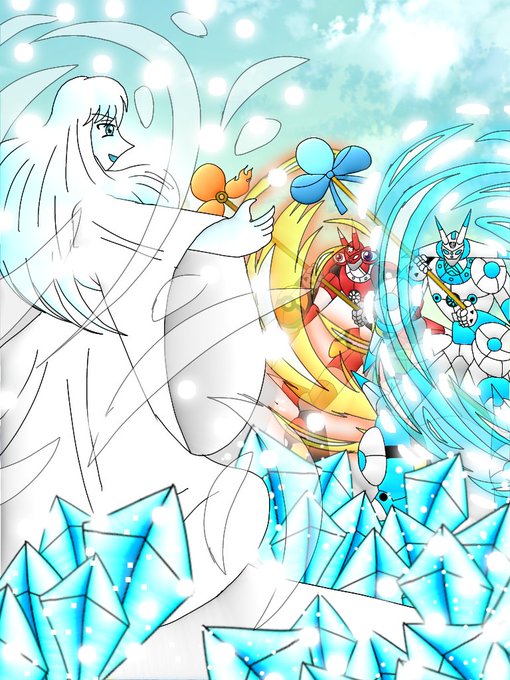 実録 アミーダ1号機&3号機VS雪女 「仏法戦記アミーダ 如来万華鏡」season1第8話より #イラスト #イラスト好きな人と繋がりたい #絵描きさんと繋がりたい #私の絵柄が好みって人にフォローされたい #春の創作クラスタフォロー祭り #拡散希望RTお願い致します