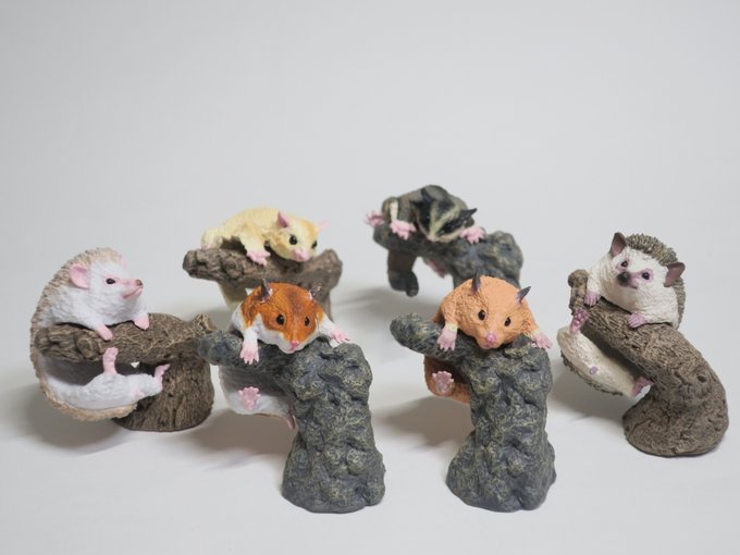 私が原型を製作したバンダイ様 @Gashapon_Bandai のいきもの大図鑑 指まきコレクション 小動物が発売になりましたので、こちらでもご紹介。 ゴールデンハムスターとハリネズミとフクロモモンガというラインナップ。 gashapon.jp/dangomushi/spe… #生き物大図鑑 #指まきコレクション