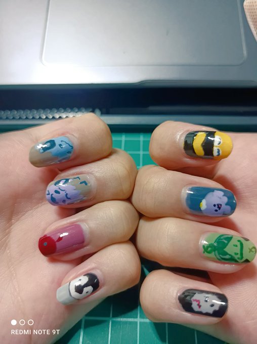可能以後拿東西都被油到拿不穩了(沒((色違版Asa只是因為我沒有橘色 有緣看到的可以幫我選一下你們喜歡的,考慮以後一次畫個單手系列款(? #Briskart #Artchivist #VioletAtelier #ArtforAsa #指甲彩繪 #蘭那羅 #鍾離