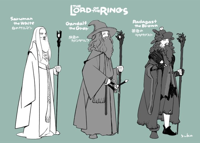 「ロード・オブ・ザ・リング」 魔法使いの設定も面白くて、職業ではなく、「存在」。そして、魔法使いは、この世界に5人しか居ないらしい。残りの2人は、「青」らしい。 #FanArt #指輪物語 #TheLordoftheRings
