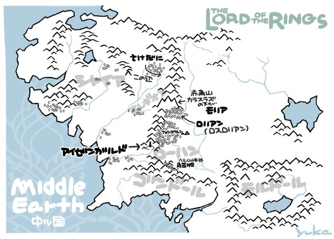 ちょこちょこ描き足されて行く地図。 なんだけれど、2回目にして、これ、無理では?ってなってる。書ききれないw カタカナが、名前なのか地名なのか固有名詞なのか、ごっちゃになるので、地名だけでもわかればって分も、あったんだけれど。 #FanArtFriday #指輪物語 #TheLordoftheRings
