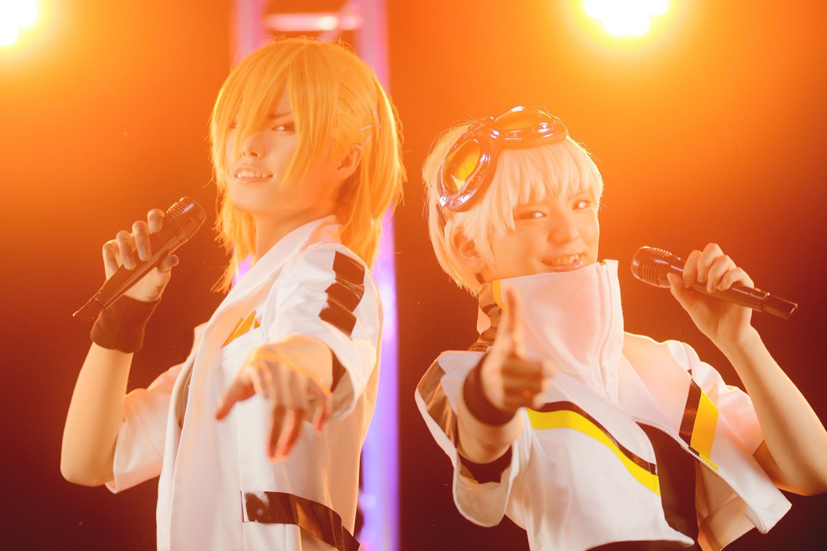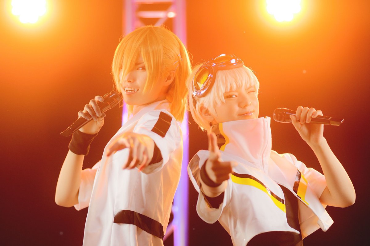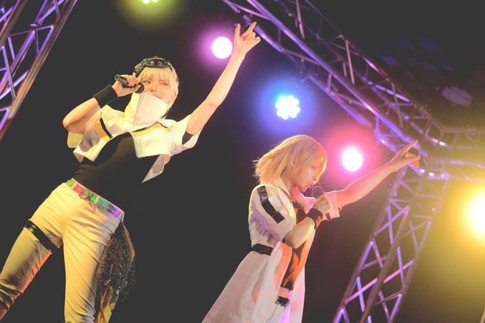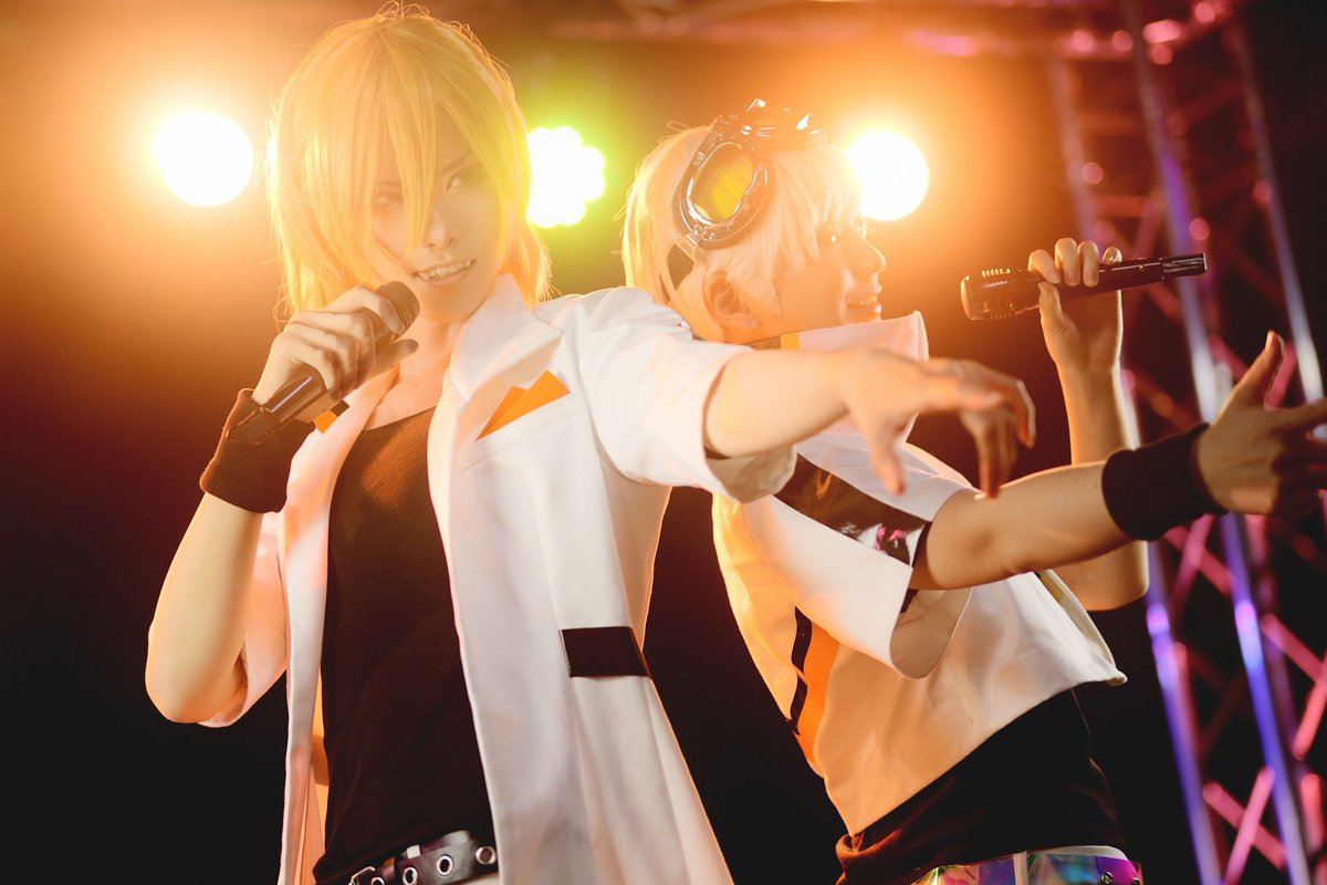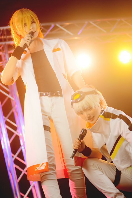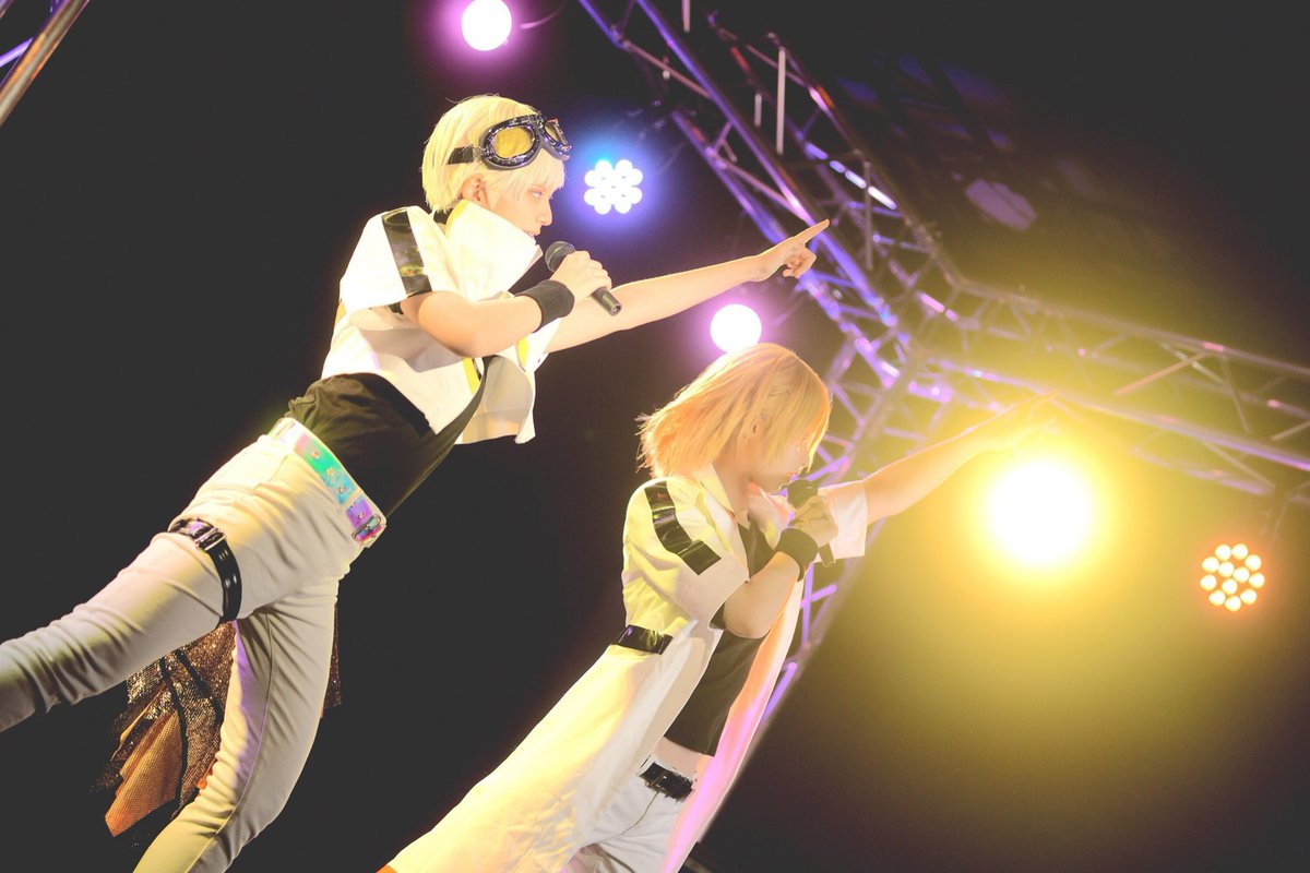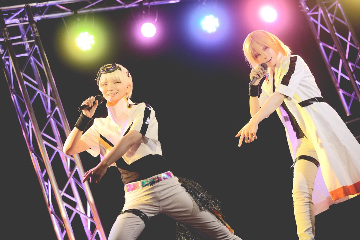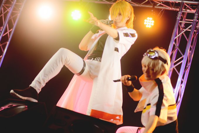 #捏造コスプレごちドル dcst完全捏造アイドルパロ どの席にいても聴こえるよ! うちわの用意は良いかな〜! 羽京:遙夜 龍水:むくと(@llxMxll ) 📸緋炎さん(@asabahien )