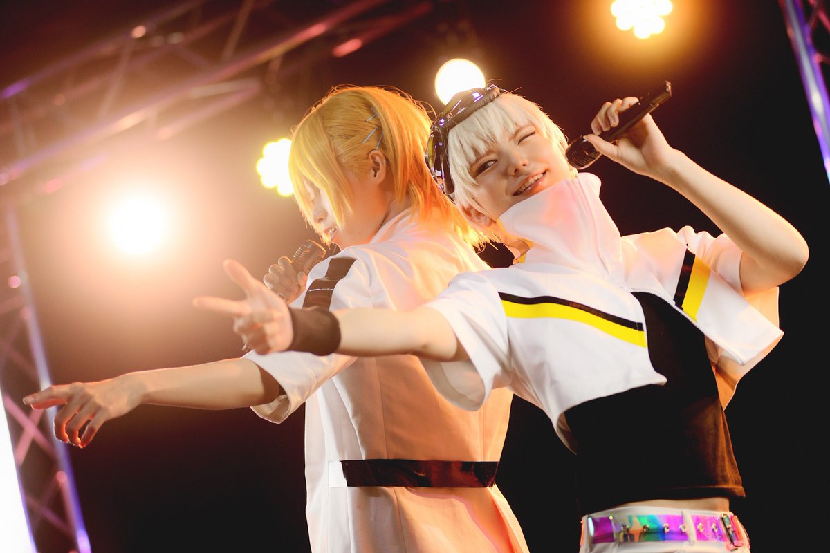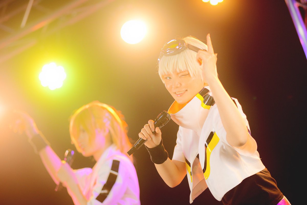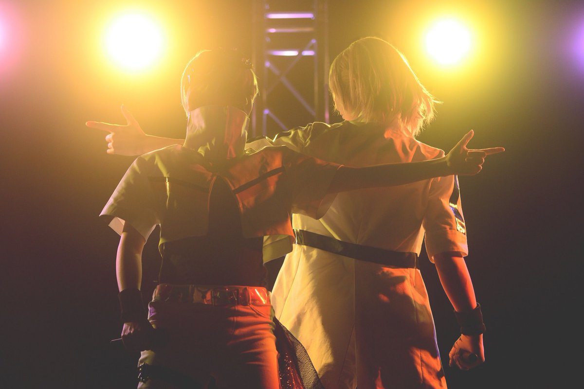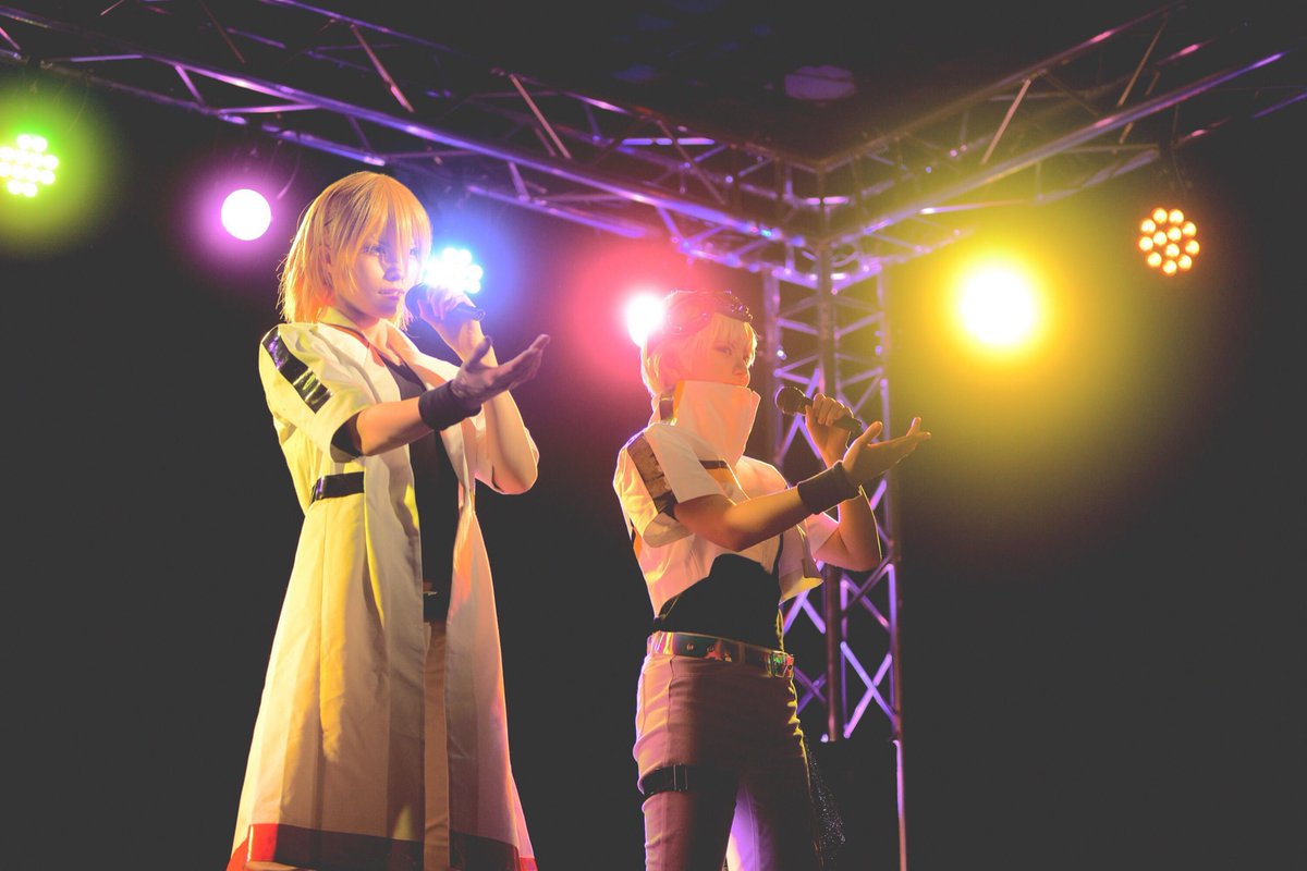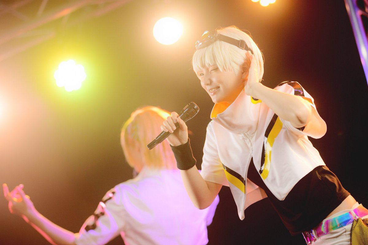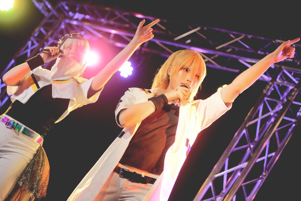 #捏造コスプレごちドル dcst完全捏造アイドルパロ どの席にいても聴こえるよ! うちわの用意は良いかな〜! 羽京:遙夜 龍水:むくと(@llxMxll ) 📸緋炎さん(@asabahien )