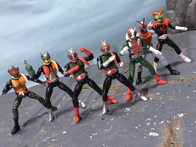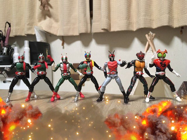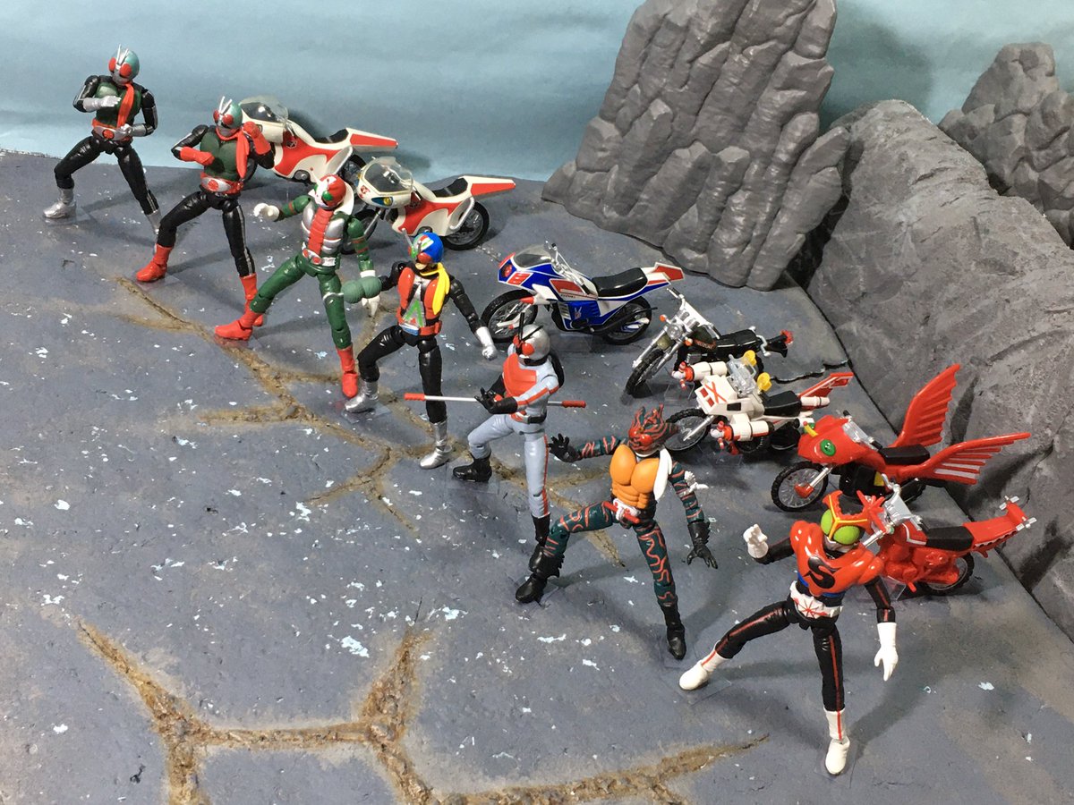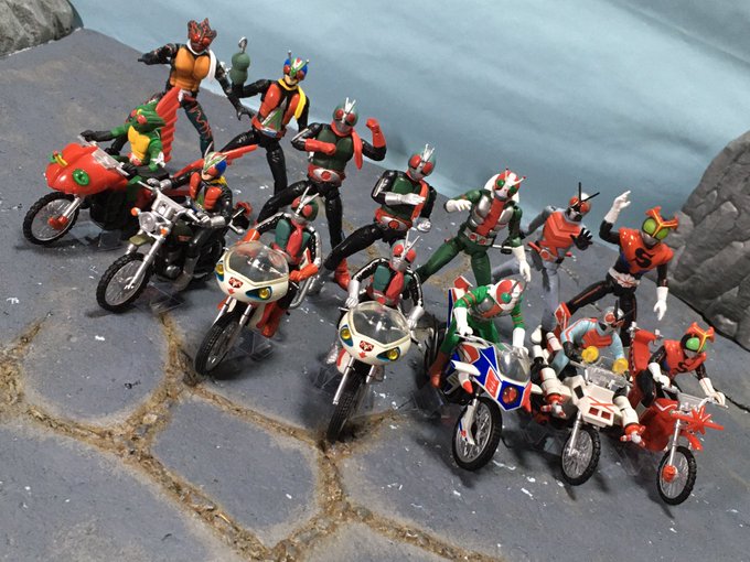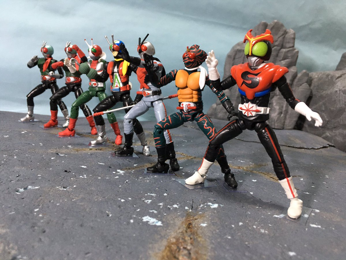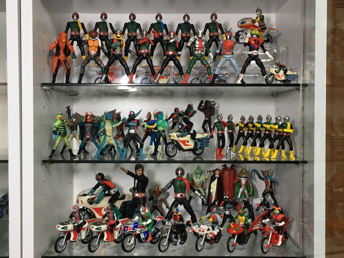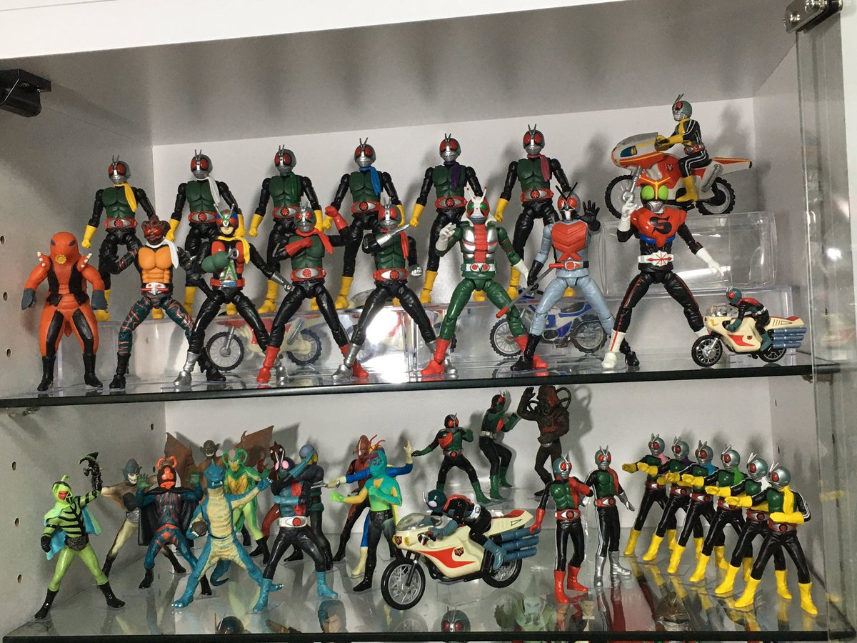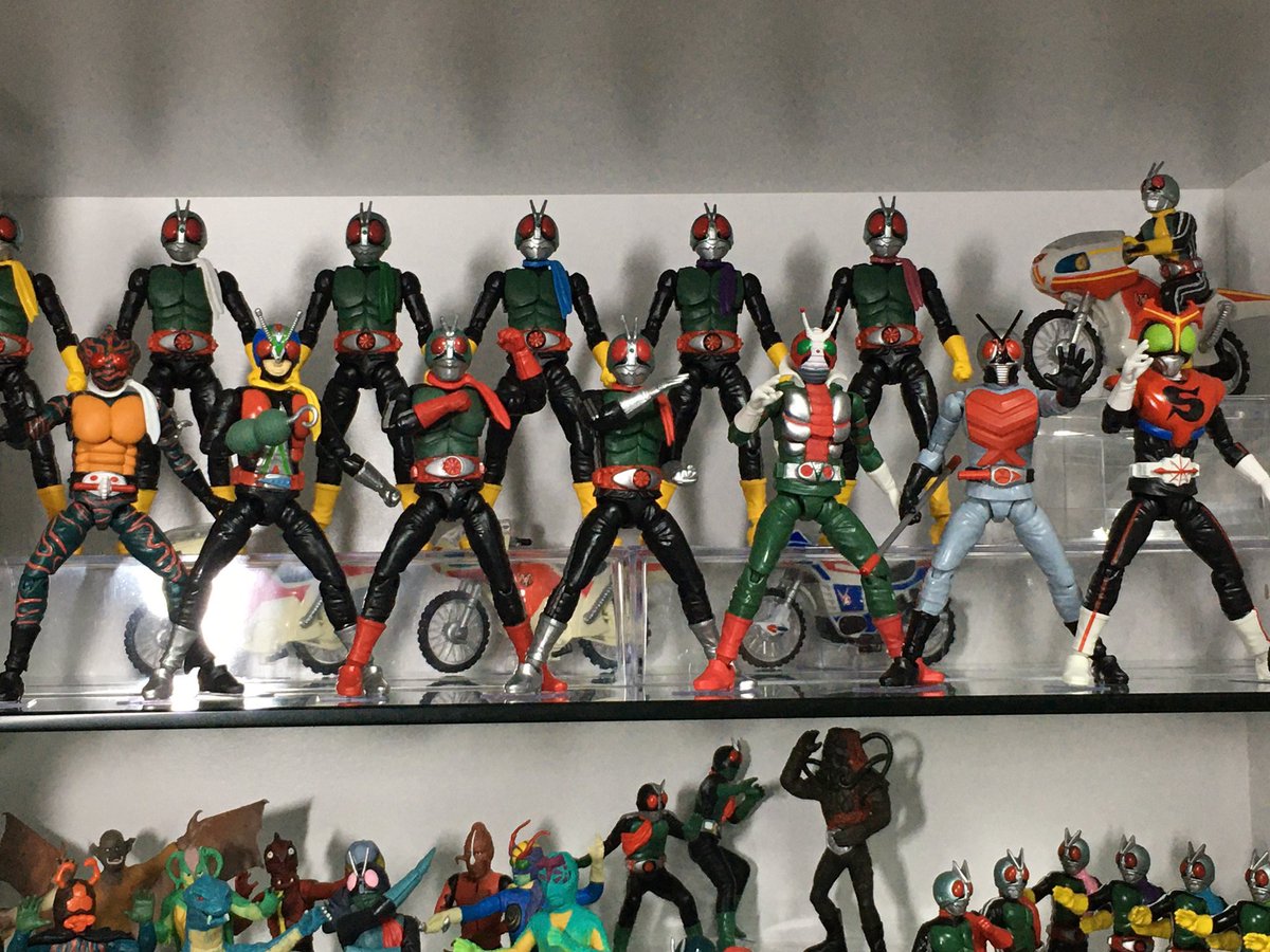 #おもちゃ撮影会 テーマ『至福の時間』既出 仮面ライダーのコレクションを眺める至福の時間😄 #仮面ライダー #HG仮面ライダー #HGシリーズ #SHODO #SHODOX #掌動 #掌動駆 #フィギュアーツ #ザ・ライダーマシン #メタルメカコレクション #仮面ライダー50周年 #オモ写