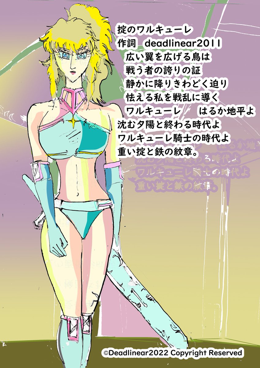 #フォロー返します #みんなで楽しむTwitter展覧会 #ArtistOnTwitter #絵描き人 #art #アトリエの系譜 #掟のワルキューレ #Walküre #Valkyrie #一次創作 #Womanwarrior 私は自分が考えた漫画用にテーマ曲を作るように しています。でも楽譜が書けないので、歌詞だけ投稿したいと思います。