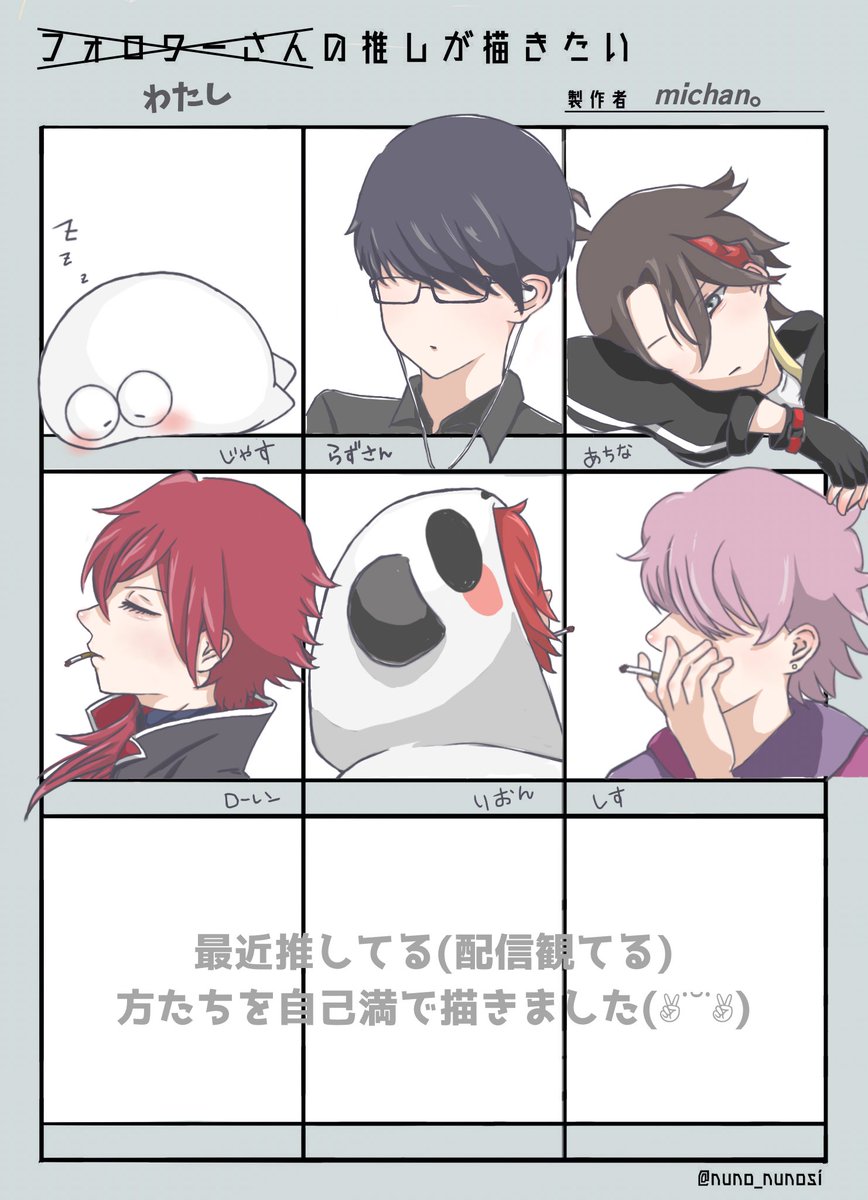 出張から帰るまで… #フォロワーさんの推しが描きたい #推しが描きたい ①甲田きゅん ②ヨルさん:スパイファミリー ③カッキー ④相馬きゅん ⑤グランパスファミリー 上手く描けたら青木きゅんと児玉きゅん。