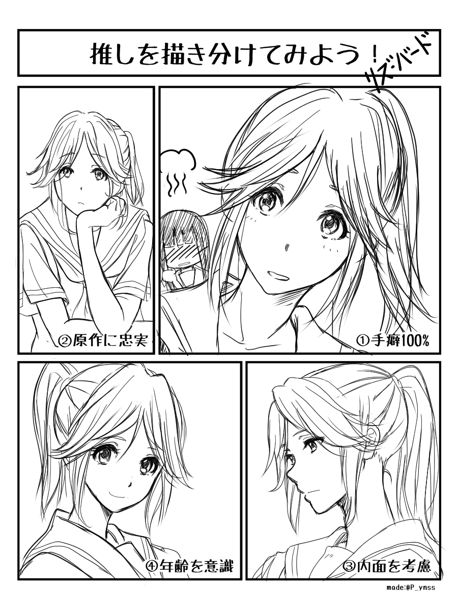 #推しを描き分けてみよう なるものを見つけて枠をお借りしました! ②の原作忠実はアニメ版寄せ ヴィレムさんは日頃、③原作準拠でストレートな18歳イメージと、④アニメ準拠で28歳の風格漂わせる18歳イメージで揺れ動きながら描いてるのでいっそ両極端を描いてみたかった #すかすか #ヴィレム