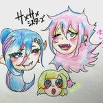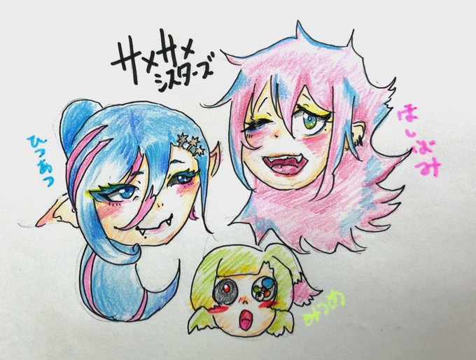 #筆arts #描いたよtailちゃん #蜜瞳のコンタクト サメサメシスターズ ちゃん達が いまの〜みつめちゃんの 推しサメなんだー( ु ›ω‹ ) ु♡ (みつめちゃん写ってるのは ほぼ壁なんで、気にしないでくだちぃ)
