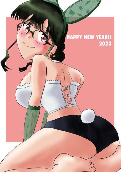 あけましておめでとうございます! 今年もよろしくお願いします! 卯年なので2代目さんにバニーになってもらいました! 「あまり…見ないでくださいよ〜」 #イラスト好きな人と繋がりたい #描き初め #グリッドマンユニバース #SSSS_DYNAZENON