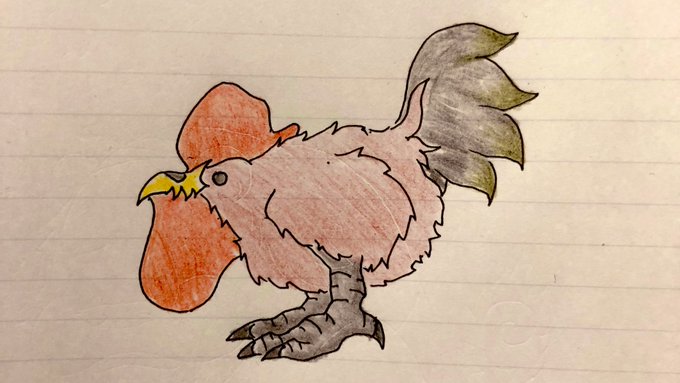 ニワトリに擬態して卵を盗みに来る動物を襲うヤツです。 基本的にヘビばかり食ってるけど、 たまに来る小動物の方が好き #イラスト好きさんと繋がりたい #絵描きさんと繋がりたい #オリキャラ #ニワトリ #擬態
