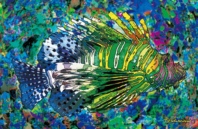 「擬態」 擬態は魚が身を守る為にする事ですが 本末転倒ですが 魚に合わせて背景を作って見ました #魚 #イラスト #Photoshop #デザイン #擬態 #拡散希望 #美術ネットワーク #絵描きさんと繋がりたい #イラスト好きな人と繋がりたい