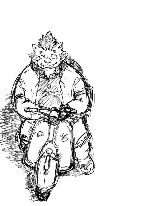 新しいソフトを使って練習! 難しい構図チャレンジ中でちょっと煽り目の原付に乗ったゴウリョウを描いてみました🛵 超難しいー💦笑 空いた場所に誰描こうかなー! 今まで使ってた機能がどこにあるのか四苦八苦しております笑 #放サモ #ゴウリョウ #ClipStudioPaint