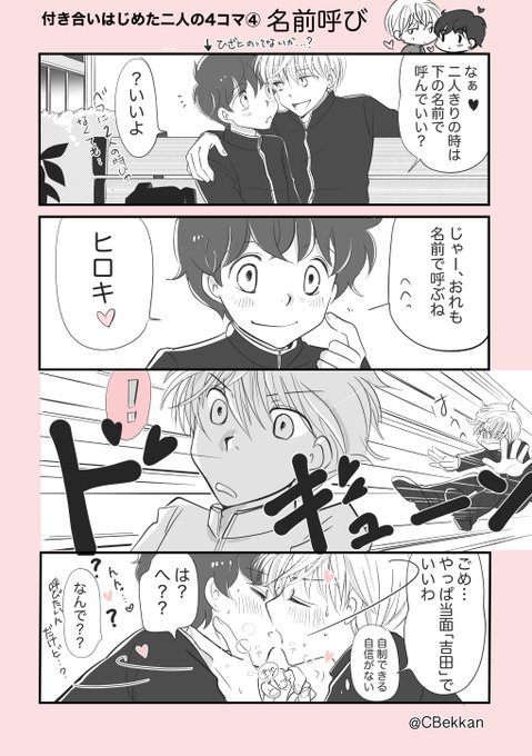 【番外編:なかよしくん4コマシリーズ】 おはようございます。 4コマ完成したので読んでいただけましたら💕 ちゃんと付き合いはじめたらどんなかな〜の妄想漫画 『付き合いはじめた二人の4コマ④〜名前呼び〜』 相変わらずです💕(笑) #漫画が読めるハッシュタグ #創作BL #放課後男子