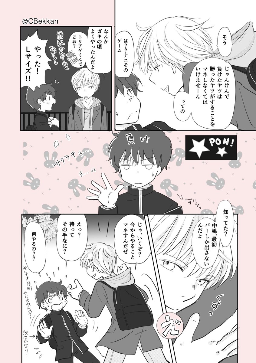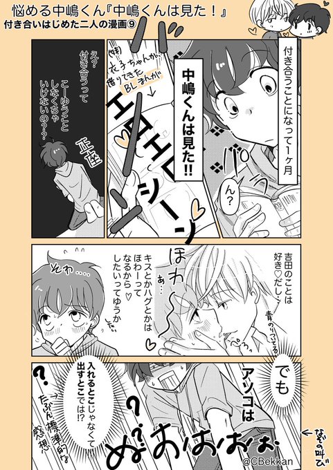 【番外編:付き合ってからのなかよしくん漫画⑨】 おはようございます。 今月の漫画が完成したのでお暇時間に読んでいただけましたら💕 全2ページ。リプ欄に続く😆 『悩める中嶋くん〜中嶋くんは見た!〜』(1/2) まあ、なんだかんだ女子はBL好き #漫画が読めるハッシュタグ #創作BL #放課後男子