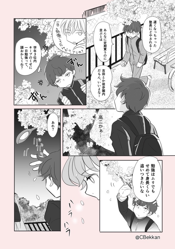 リベンジ‼️🔥 三連休なので過去作ですが読んでいただけたら嬉しいです🙏 一年半くらい前の漫画で拙いのですが、とてもお気に入りで…😊🙇♀️ 『たえて桜のなかりせば』(1/5) 【前編後編】になってます(共に2ページ目がタイトルページ) #創作BL漫画 #漫画が読めるハッシュタグ #放課後男子