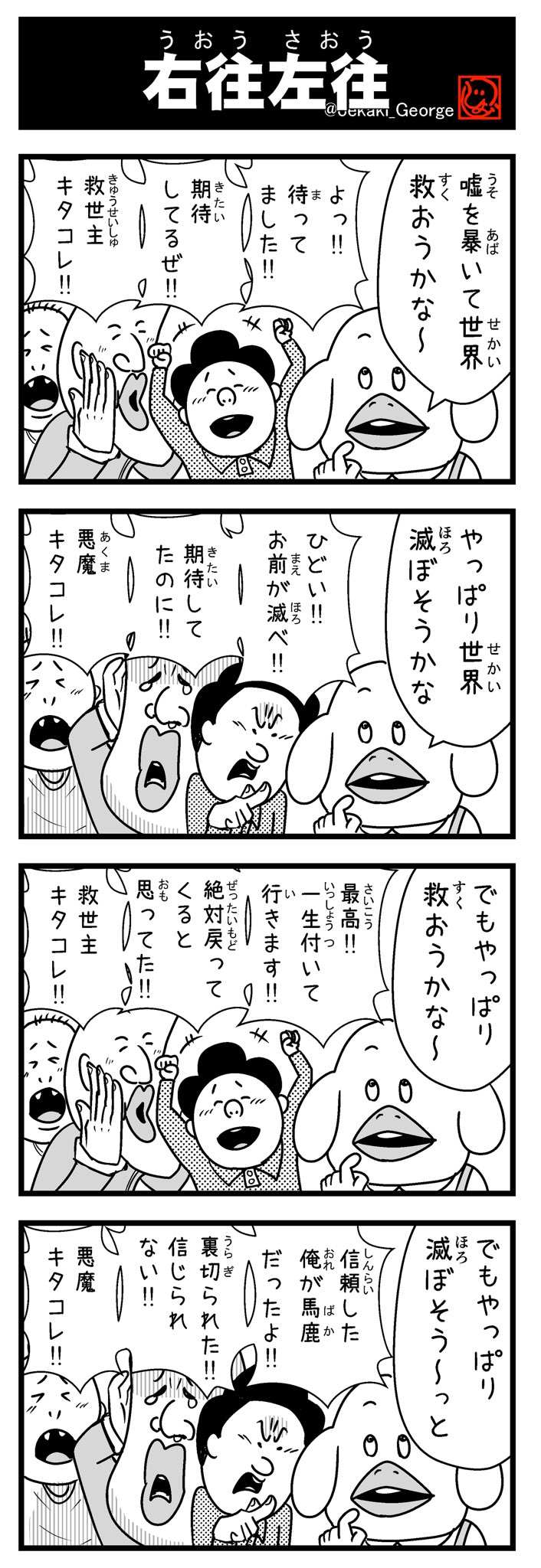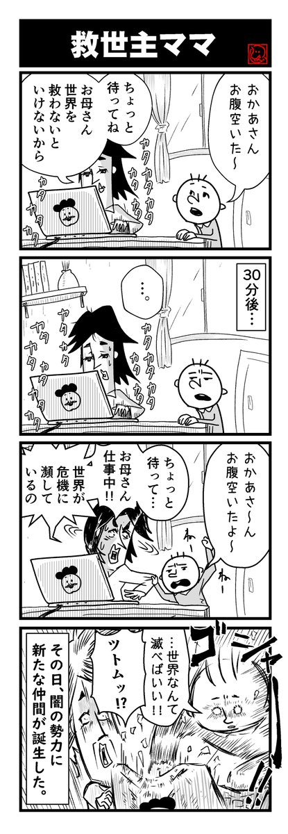 どうして世界を救おうと頑張っているのに新たな問題が発生するの!?😡💢 #ジョージの4コマ No394 「救世主ママ」 #4コマ #4コマ漫画 #世界を救う #救世主 #灯台下暗し 👼不定期メルマガ resast.jp/subscribe/1477… 💡イベント、最新情報一覧 smart.reservestock.jp/consecutive_ev…