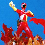 #夜のフィギュア撮影会 お題【炎】 待ってろよ 生きてろよ 絶対そこにたどり着く! save the earth! save the life! 急げ 救急戦隊ゴーゴーファイブ!! #救急戦隊ゴーゴーファイブ #ゴーレッド #巽纒