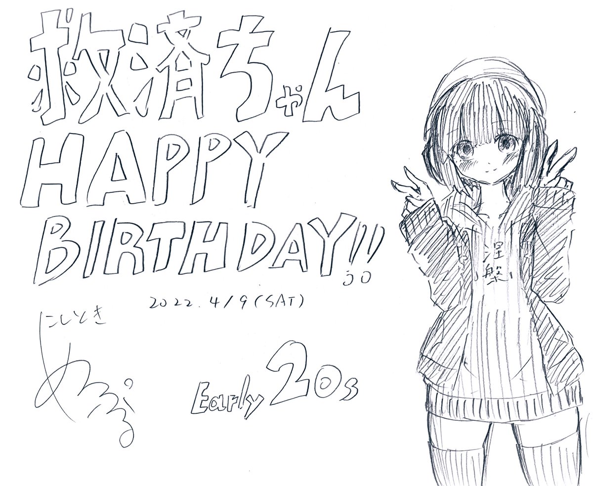#西時の1日1絵【617日目】 今日は救済ちゃんの誕生日記念イラスト描いた!!!! 救済ちゃん!俺一生ついて行くから!これからもよろしくな! #絵描きさんと繋がりたい #きゅうさいあーと #救済ちゃんの生誕の災厄祭2022