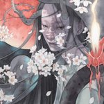 gallery hydrangea様にて開催中のグループ展『#散る頃に 』より。 「夜陰」F10号 片目だけ泥眼をイメージして金色を入れてるので、原画ではキラキラしてます👁 作品は通販もご対応頂けますので、気になりましたらギャラリーまでお問合せください。 @AjisaiGallery gallery-hydrangea.shopinfo.jp/posts/32013822/