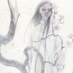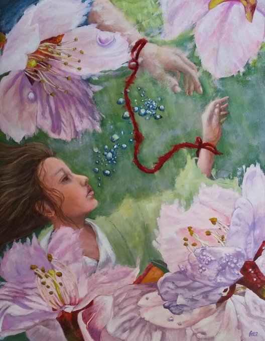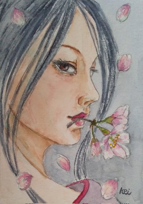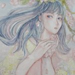gallery hydrangea #散る頃に 4/8(金)~4/17(日)火・水休廊 13:00~18:30(最終日~17:00) @AjisaiGallery 小品2点 #watercolors #絵墨 #cherryblossom #figurativeart #mythology #goddess
