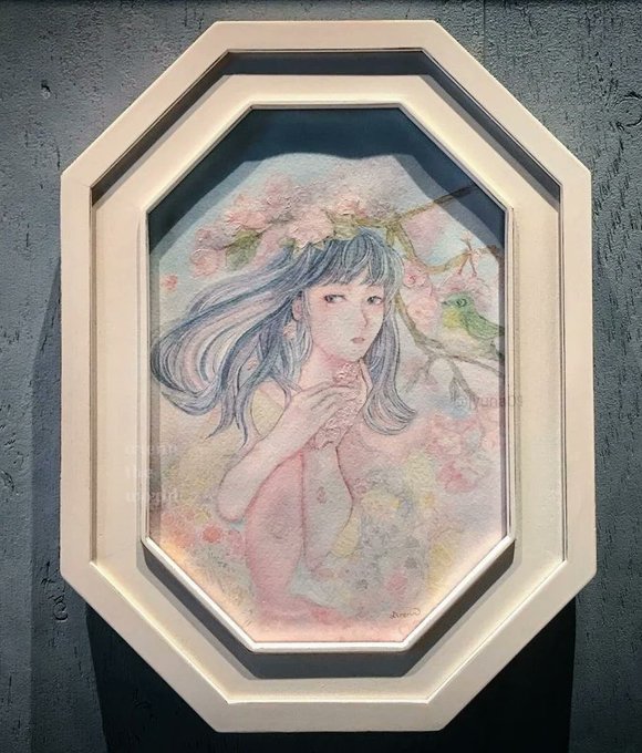 #散る頃に 通販 #小作品 こちらはポストカードサイズです。 気軽に原画をご覧いただけたらと このまま飾っていただけます。 ご縁がありますように🕊️ #アート好きな人と繋がりたい #乙女のうつろい #春 #桜 #illustration #透明水彩 twitter.com/AjisaiGallery/…
