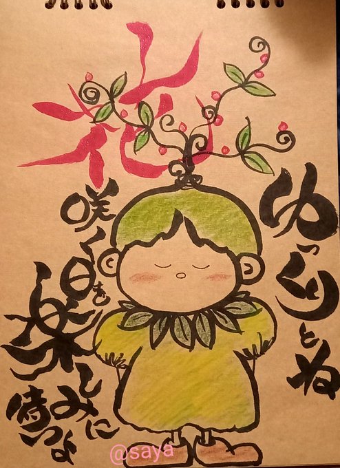眠れないのでこんな時間にお菓子と煮卵作ってた(どんな組み合わせやねん🤣) 【ゆっくりとね 花が咲く日を楽しみに待つよ】と、アナログで文字アート(!?)を久しぶりに描いてみました。 #イラスト #文字アート #筆ペン #色鉛筆 #イラスト好きさんと繋がりたい #絵描きさんと繋がりたい