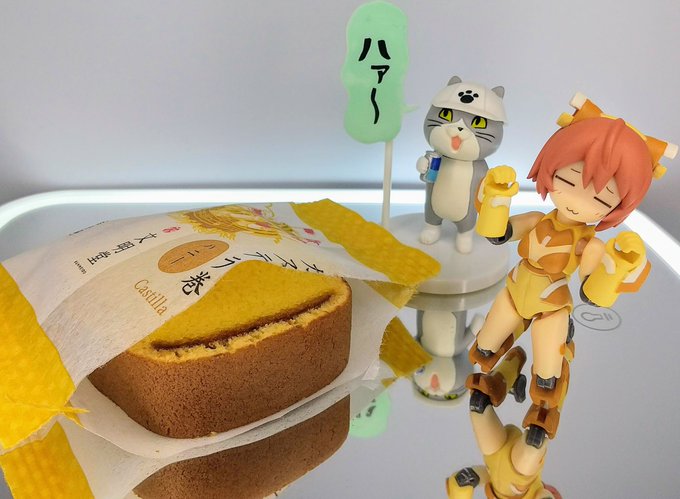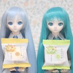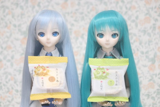 #深夜の初音ミク撮影60分一本勝負 3/18のお題【一番】#深夜のドール撮影60分一本勝負 3/18のお題【フリー】遅刻 #文明堂 #カステラ巻 ミク・ユキ「カステラ一番、電話は二番、三時のおやつは文明堂🎵」