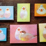 文鳥まつりで販売するキーチェーン付きアクリルスタンドが完成しました!スタンドは初めてゴールドを選んでみました。綺麗にできてよかった✨✨ #文鳥まつり #文鳥まつり2021 #ふろしき文鳥