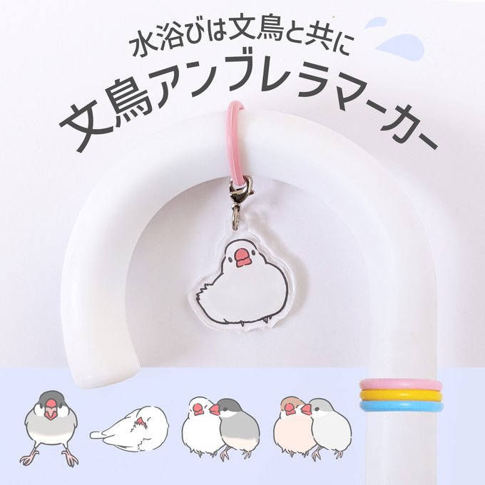おい!かいぬし!! 文鳥に隠れて外で水浴びはズルい^( 'Θ' )^‼︎ と怒られたくないかいぬしの皆様へ これで雨の日はあなたも一緒に水浴びを😩☔️ 「文鳥アンブレラマーカー」できました! これは #文鳥まつり2021 に持っていけるはず💪