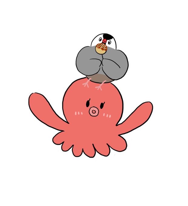 #ことりマーケット大阪 9月27日まで 10時~18時最終日は17時閉場 京阪百貨店守口店 7階 京阪ギャラリー #文鳥自宅警備員 募集中 お待ちしております💪 パトロール中、タコからたこ焼きをもらった🐙 #torionigiri #文鳥 #1024部屋 #イラスト