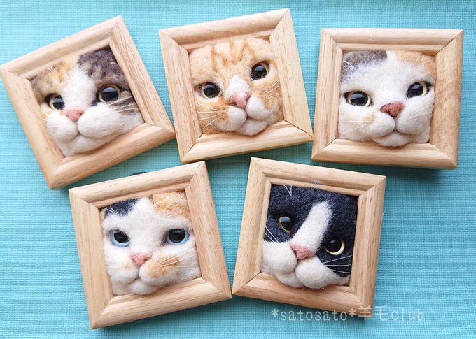 #新しい出会いがある季節にまだ知らない素敵な作品に出会えるタグ まだ知らない猫好きな誰かに届くようRTしてもらえたら嬉しいです🐱💕 #羊毛フェルト #猫フレーム 🎪販売イベントは固定ツイをご覧下さい