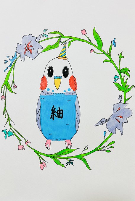 ♢ ㊗️フォロワー100人達成記念! ♢ 新キャラクター 2代目 名前「 紬(つむぎ)」 新キャラクター描きました!! フォローしてくれた皆様感謝です☺️ #インコ #イラスト #新キャラ #絵描きさんフォロバ100 #絵描きさんと繋がりたい