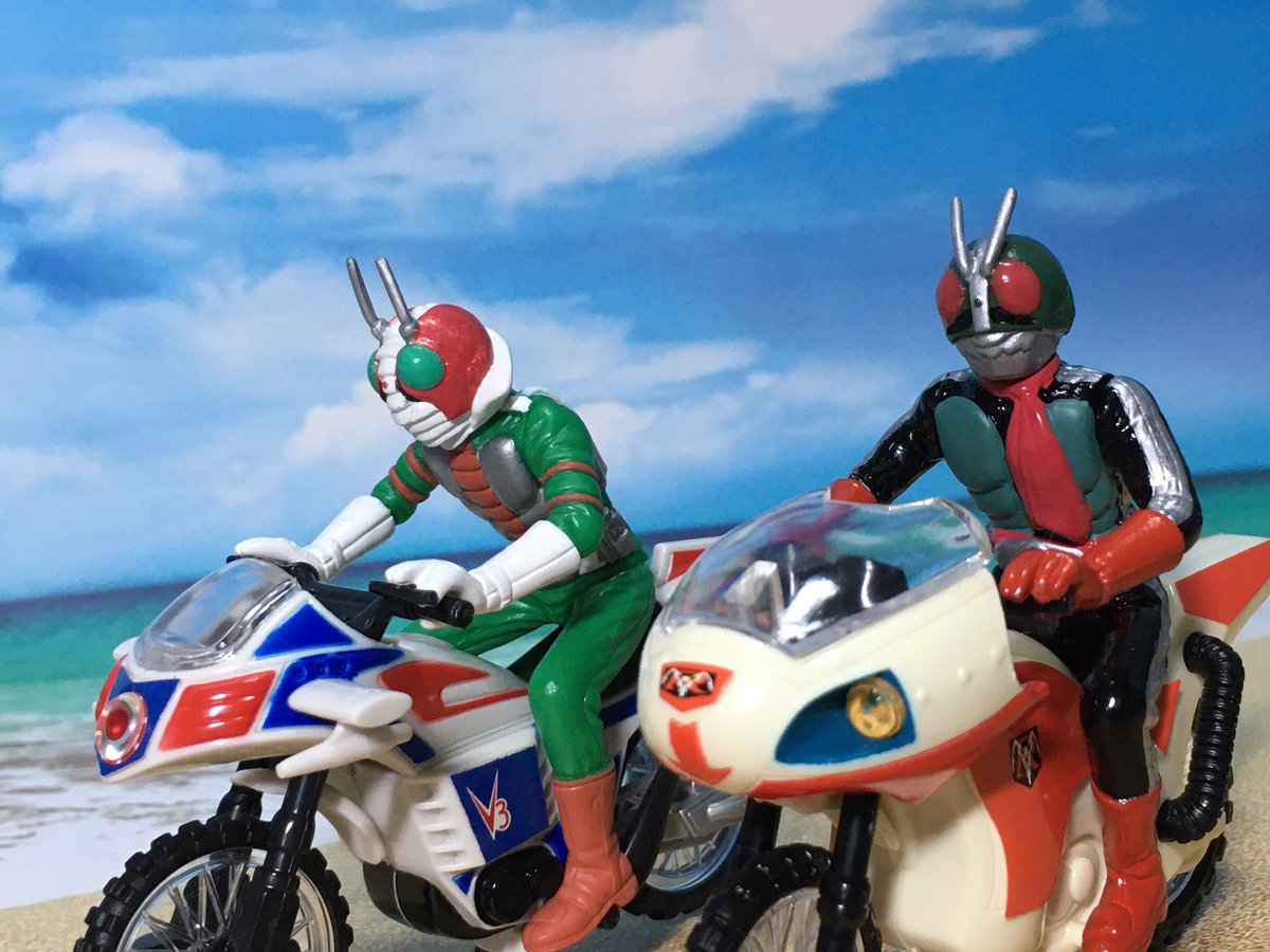 あり得ない共演!?仮面ライダー旧1号と新1号!😄 #仮面ライダー #仮面ライダー旧1号 #仮面ライダー新1号 #サイクロン号 #新サイクロン号 #フィギュアーツ #フィギュアーツ写真部 #オモ写