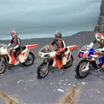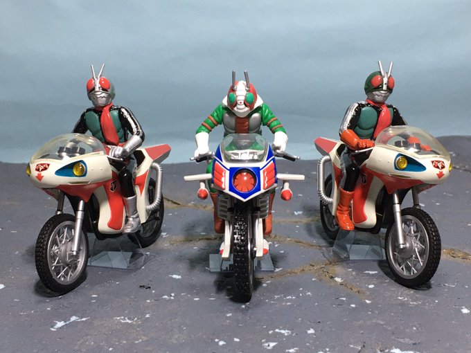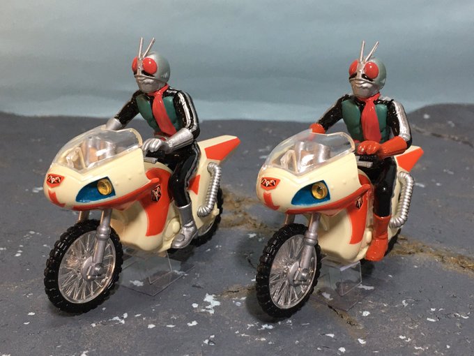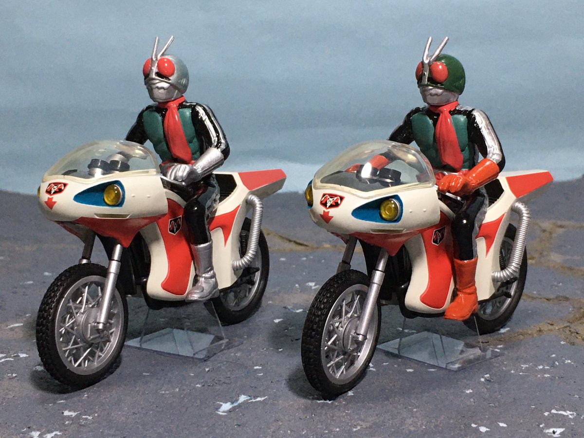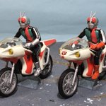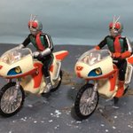似てる写真だけど・・ちょっとずつ違う!?ザ・ライダーマシン→メタルメカコレクション(前期Ver.)→後期Ver.にリペイント→新2号の頭を客演Ver.に交換。 #仮面ライダー #仮面ライダー新1号 #仮面ライダー新2号 #新サイクロン号 #メタルメカコレクション #ザ・ライダーマシン #オモ写