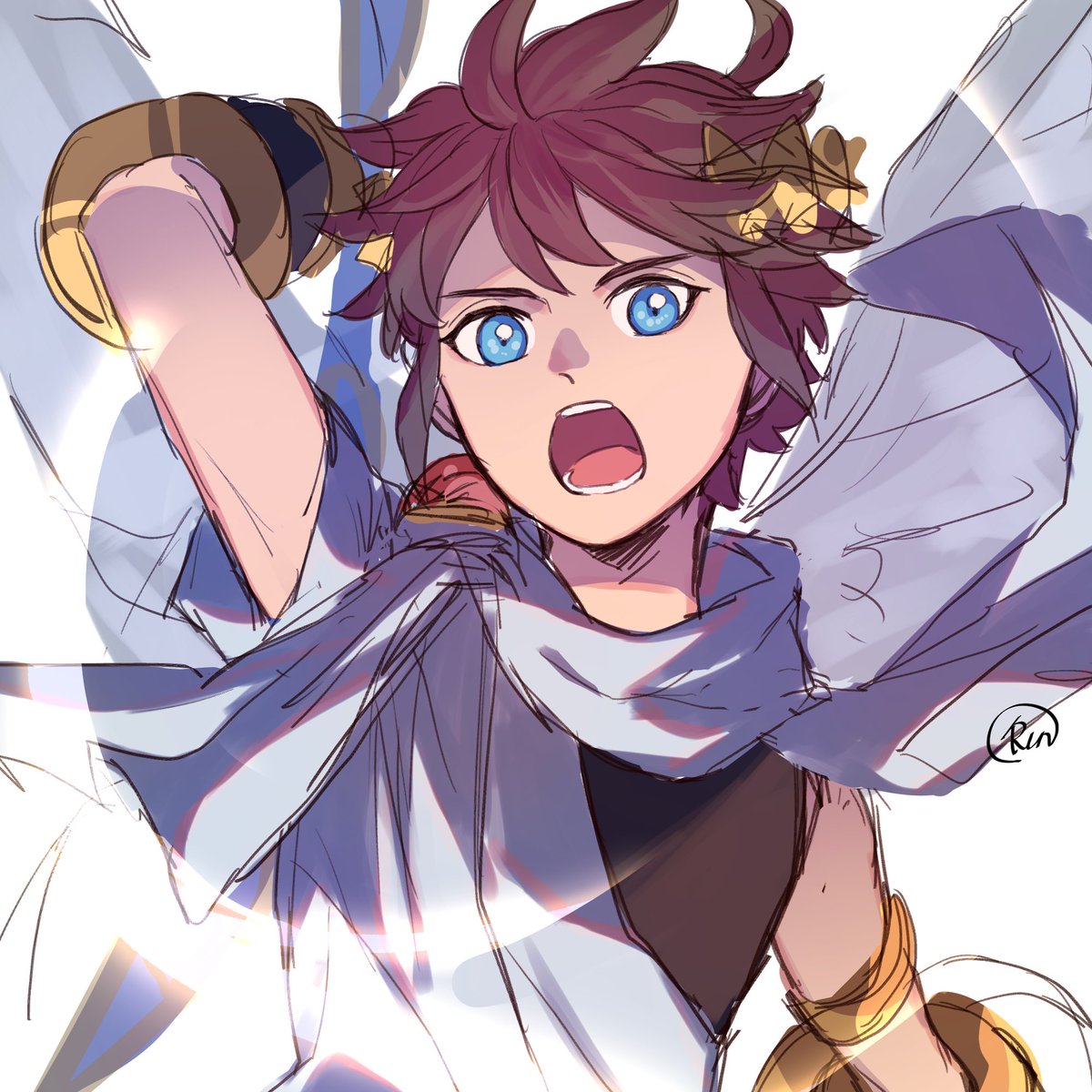 #新パル10周年 #新・光神話パルテナの鏡10周年 新パル十周年おめでとう🎉 今回は感謝の気持ちを込めてエンジェランドを背景にハートを捧げるピット君を描きました🖌️ それにしてももう十周年か… 時の流れは本当に早いわぁ…