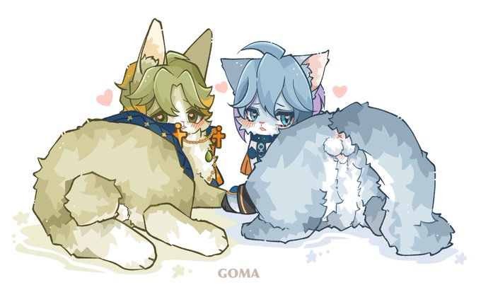 はしゃぎ過ぎ疲れて眠るエイト やっと静かになった。と思ってるケシー 定期的にケシエイ描かないと狂う病になってる気がするww ディーラー服のエイトも楽しみだ! #NUcarnival #NUカーニバル #新世界狂歡