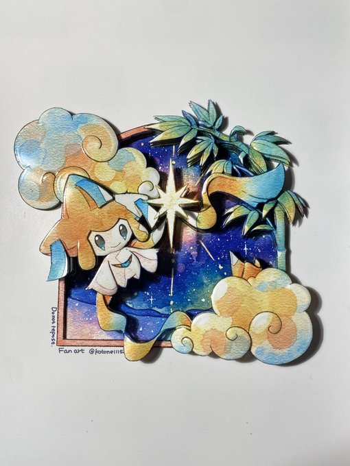KoToNeさん(@kotone11152 )が #ジラーチ星祭 にて描かれた「星に願いを」をシャドーボックスの技法で立体化しました! 光沢感の異なる紙を組み合わせて星空と光の美しさ、そして空に浮かぶジラーチの可愛さと神々しさを表現しました。 ツリーに画像と動画を繋げます。 #新作シャドーボックス