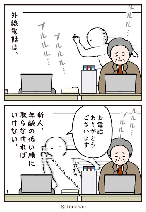 新入社員のピチピチ感はいつから失われてしまうのだろう🙄 #マイナビニュース にて会社漫画連載中📷news.mynavi.jp/series/kyomuto… #いとうちゃん #厭うちゃん #4コマ漫画 #漫画が読めるハッシュタグ #会社員あるある #新入社員