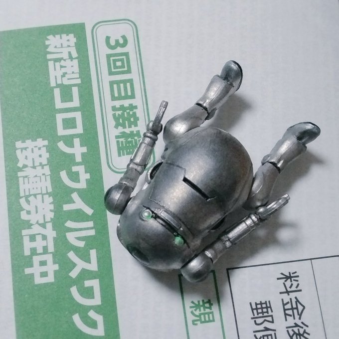 「ねぇ、腕の可動がガンガル並なんだケド」 「肘は曲がるじゃろ」 「もう一軸!」 片腕が上げにくいと生活に支障がありますねの回。 接種でモメない日の到来を願う。 #1d1d #モデルナアーム #新型コロナワクチン