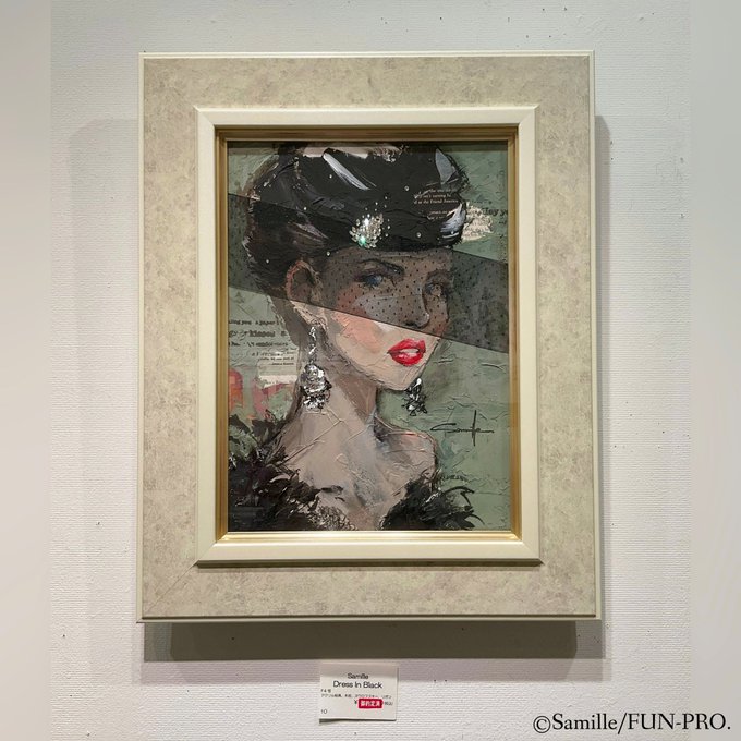 新作の「Dress In Black」です♪ 今回初めての試みで、目元部分に幅広のレースリボンを組み合わせました。ぜひ原画をご覧頂けますと嬉しいです😊 株式会社SINDOさんのリボン、アクリル絵の具、木炭、スワロフスキーを使用してます✨ #新宿伊勢丹6Fにて作品展開催中 #10月4日まで